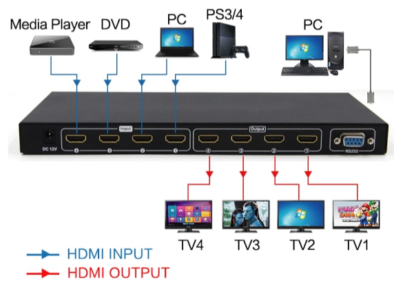 3.IR remote control allows you to switch outputs from up to 6 feet away.
